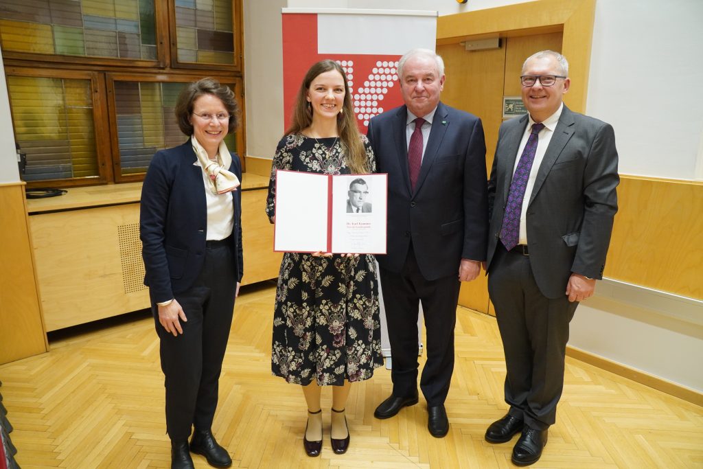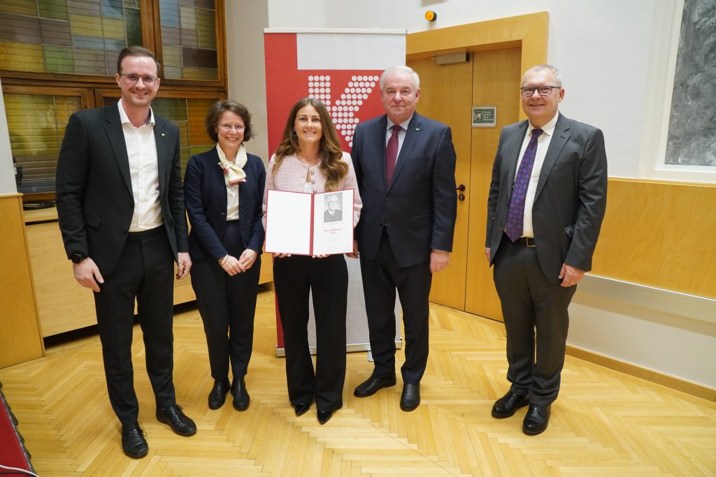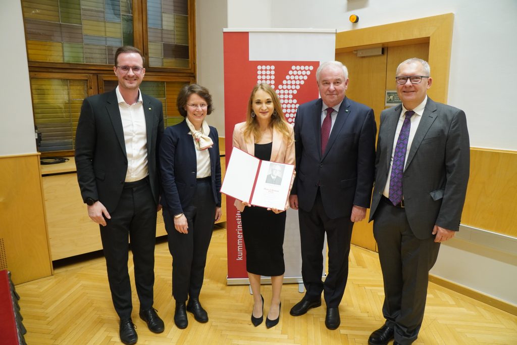 Im Rahmen der Veranstaltung fand auch eine Preisverleihung für hervorragende wissenschaftliche Abschlussarbeiten mit thematischen Bezügen zu Sozial-, Wirtschafts- und Familienrecht sowie -politik statt. Der seit 1995 verliehene Hans-Vollmann-Preis, benannt nach dem 1994 verstorbenen steirischen NRAbg. und politischen Weggefährten des Sozialpolitikers Karl Kummer, wurde an Frau Carmen Oberreßl, MSc MA MA für ihre Masterarbeit „Remote Work: Verantwortungsvolles, ortsunabhängiges Arbeiten der Zukunft?“ und an Frau Mag.a Dr.in Anna Zaversky für ihre Dissertation „Der Europäische Gerichtshof und Urlaubsrecht: Das Urlaubsgesetz 1976 im Lichte der unionsrechtlichen Vorgaben“ überreicht. Der 2018 gestiftete