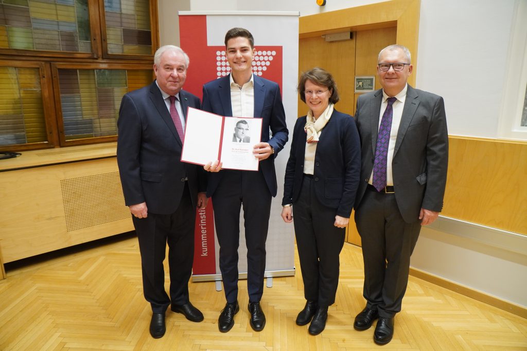 Dr.-Karl-Kummer-Preis für Familienpolitik wurdean Frau Mag.a Theresia Maria Oitzl für ihre Diplomarbeit „Zivilrechtliche Probleme der Geschlechtsumwandlung bei Minderjährigen“ und an Herrn Mag. Daniel Wolfinger für seine Diplomarbeit „Die Umsetzung der sog Work-Life-Balance-Richtlinie im Landarbeitsgesetz 2021“ verliehen. Die Laudationes hielten Obmann-Stellvertreter Univ.-Prof. Dr. Thomas Gremsl und Gf. Dr.in Hedwig Unger.